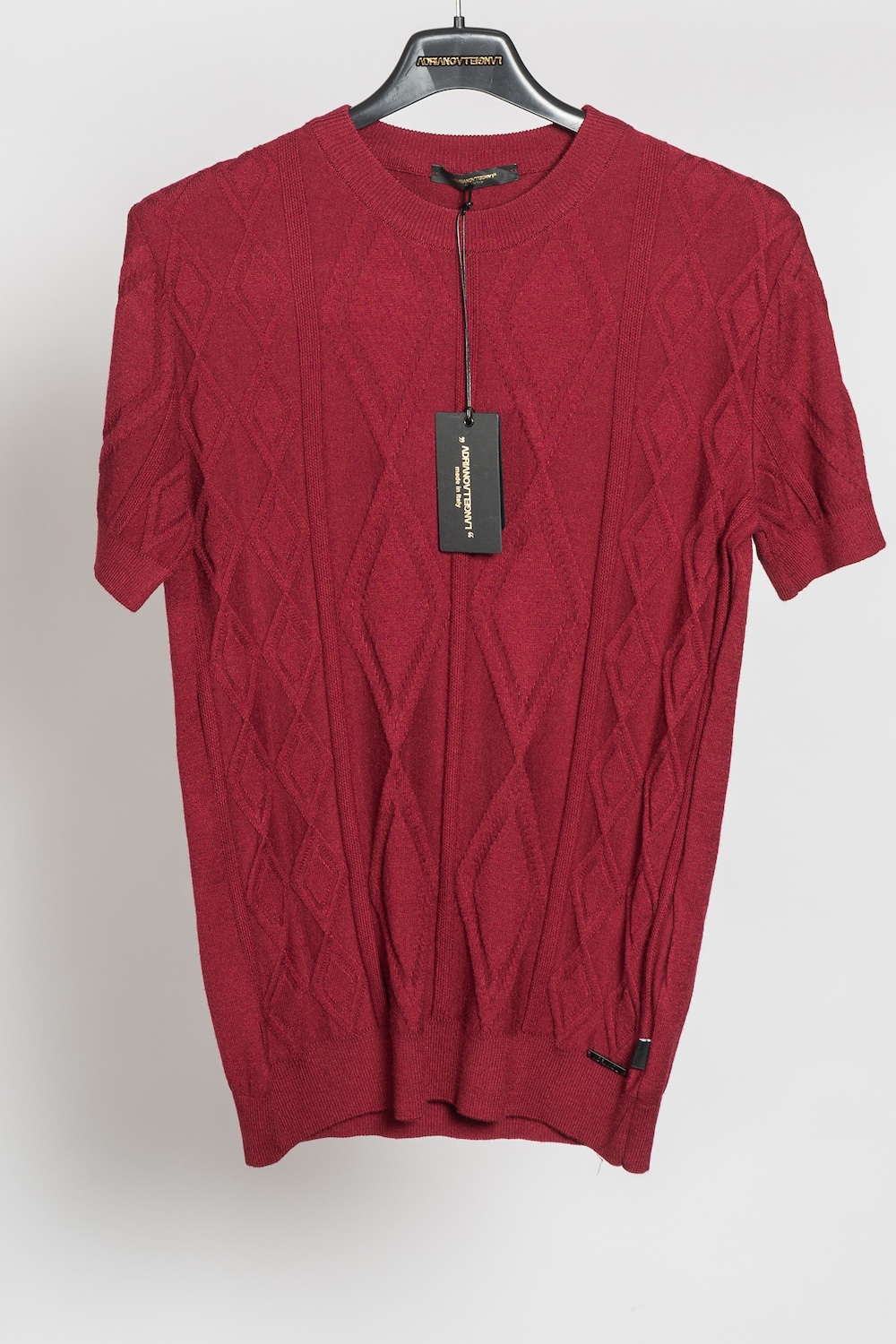 Блуза фино плетиво с къс ръкав и релефна плетка