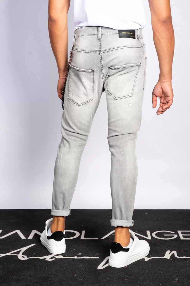 Дънки сиви с захабен ефект и пръски от боя