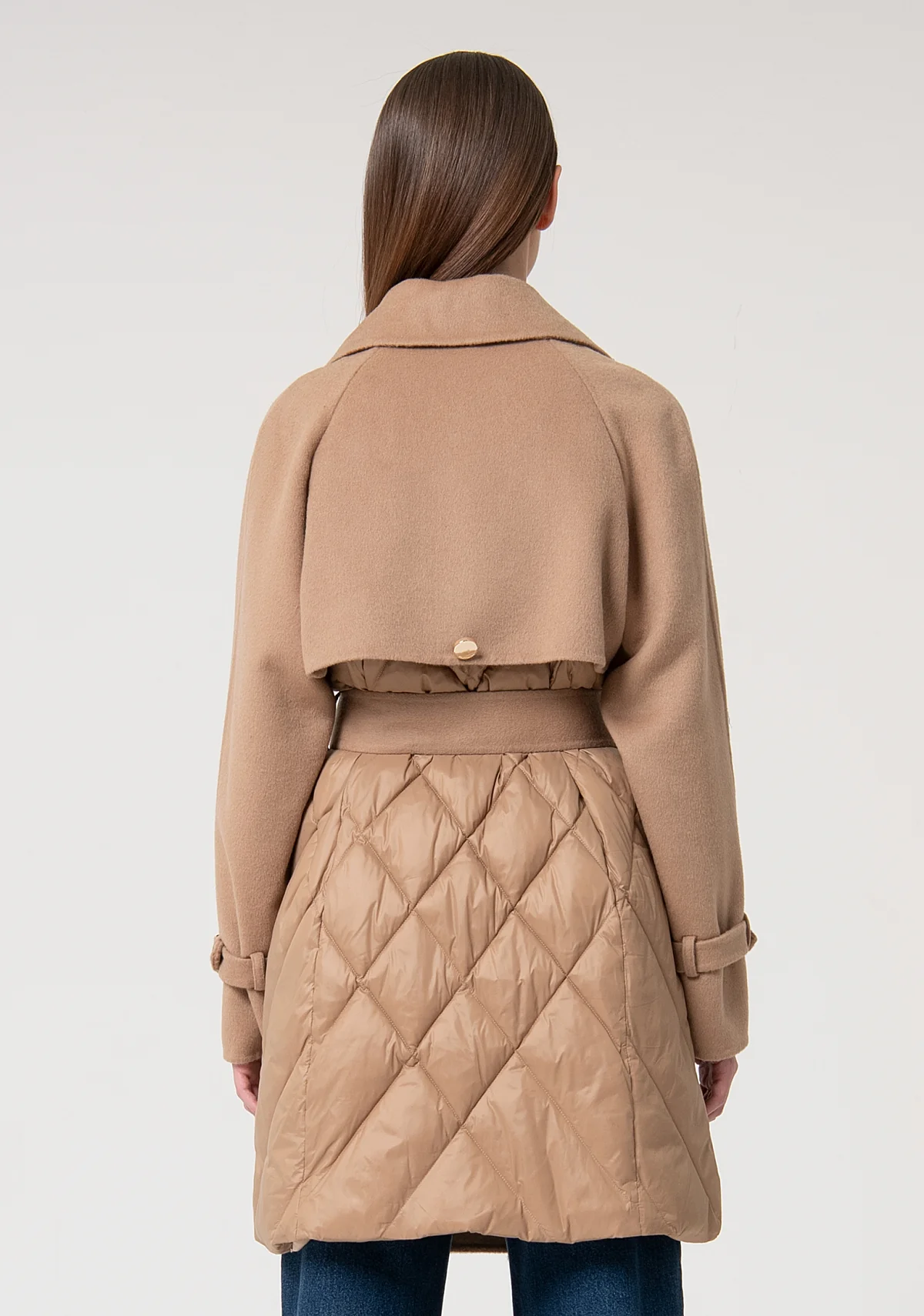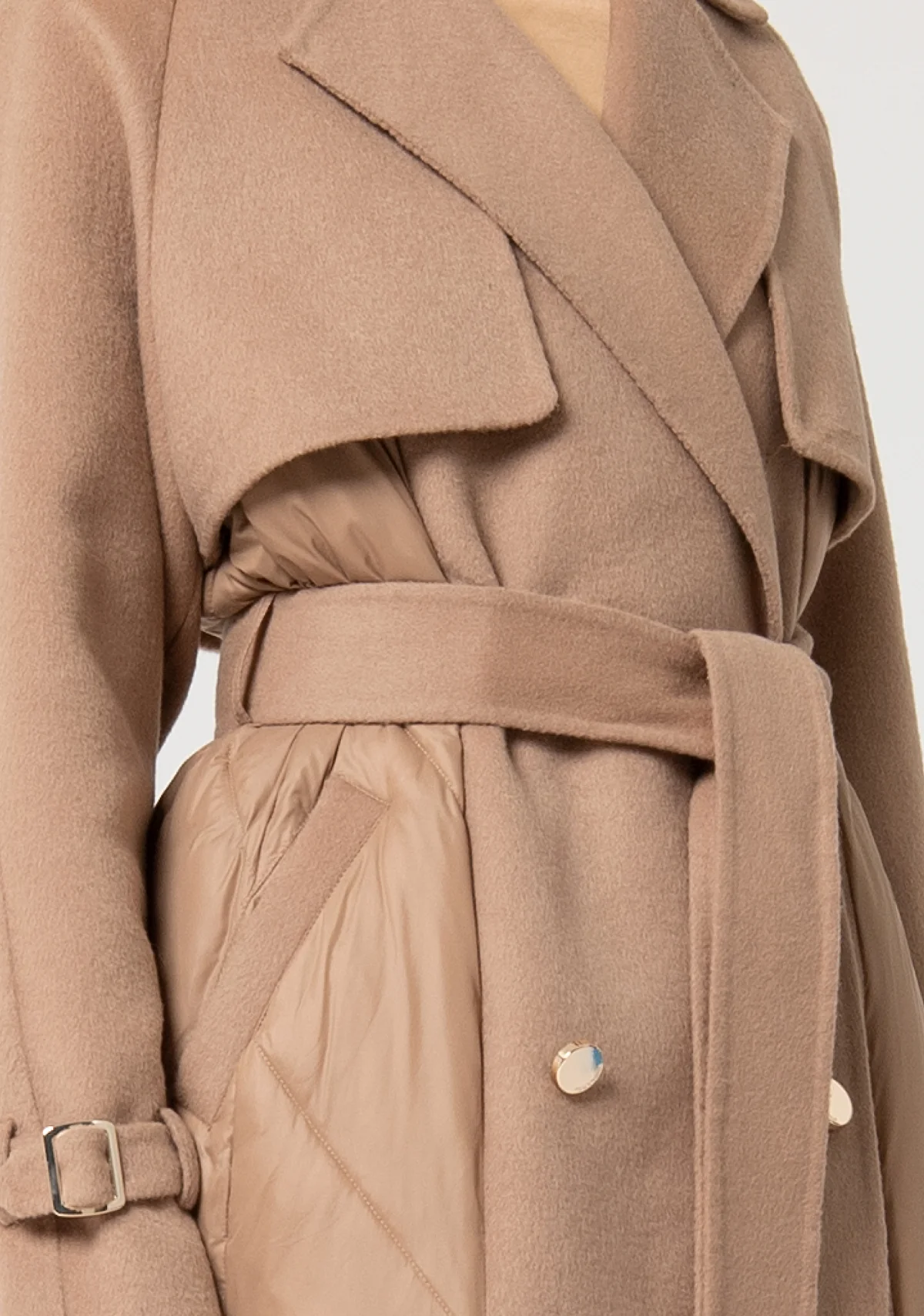 Палто от две материи с колан и златисти елементи