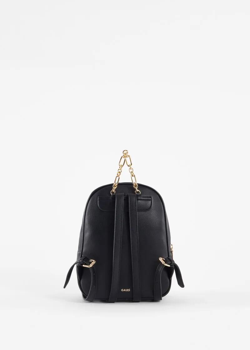 Раница с метална  дръжка тип верига , преден джоб  с лого. Пране и грижа: Следвайте инструкциите на вътрешния етикет. Състав: 100 % полиуретан.
